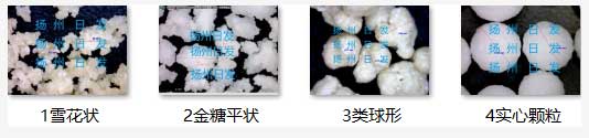 According to the degree of empty solid, it can be divided into four particle forms: snowflake like particles, golden sugar flat particles, quasi spherical particles and solid spherical particles. According to the hygiene level, there are GMP level and routine level. It is divided into ten categories by industry:
