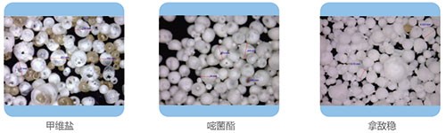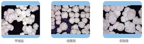 Taking three pesticides as examples, the particle morphology is as follows.